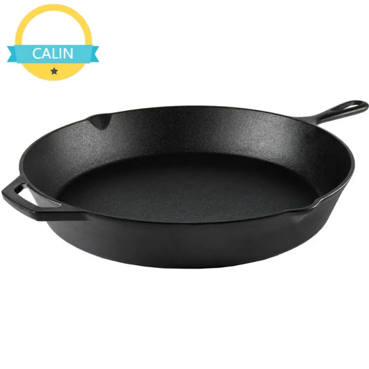 COOLKLICK 15" Cast Iron Skillet with Handle and Lips